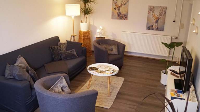 Die Ferienwohnung bei der Linde befindet sich in Ufhoven, etwa 20 km vom Schloss Friedenstein, dem Alten Rathaus Gotha und dem Hauptbahnhof Gotha entfernt. Diese Lage bietet eine gute Anbindung an die umliegenden Städte und Sehenswürdigkeiten. In der Nähe gibt es auch viele schöne Wanderwege und Naturgebiete, die zu Erkundungen einladen. Der Bahnhof Eisenach liegt etwa 28 km entfernt und die Automobile Welt Eisenach ist nach 29 km erreichbar. Der Flughafen Erfurt-Weimar ist der nächstgelegene Flughafen und befindet sich etwa 33 km entfernt.