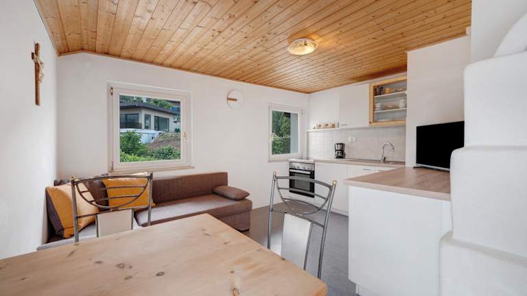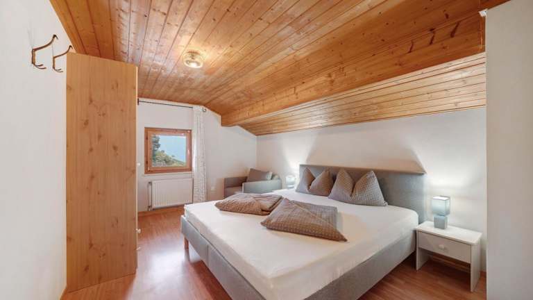 Die Ferienwohnung umfasst zwei Schlafzimmer, ein Badezimmer, Bettwäsche, Handtücher, einen TV und eine Terrasse mit Blick auf die Berge.
