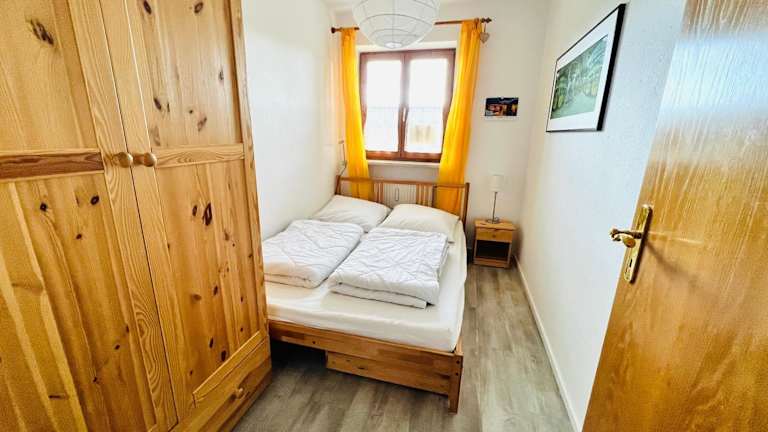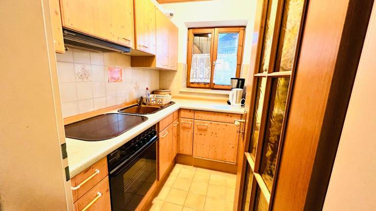 Zur Selbstverpflegung ist die Ferienwohnung mit einer voll ausgestatteten Küche einschließlich Kühlschrank und Essbereich eingerichtet. Weitere Verpflegungsmöglichkeiten sind nicht angegeben.