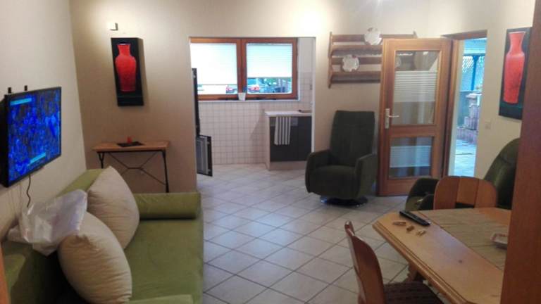 Die Ferienwohnung verfügt über eine voll ausgestattete Küche mit Kühlschrank und Kaffeemaschine sowie einen Flachbild-TV. Jede Wohneinheit hat ein eigenes Badezimmer mit Dusche. Einige Einheiten bieten zudem eine Terrasse oder einen Balkon mit Blick auf den Garten. Die Unterkunft ist für Familien geeignet und Haustiere sind erlaubt.