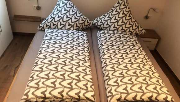 Die Ferienwohnung verfügt über zwei Schlafzimmer und eine Küche, die mit einem Kühlschrank, einem Geschirrspüler sowie einer Kaffeemaschine ausgestattet ist. Handtücher und Bettwäsche werden bereitgestellt.