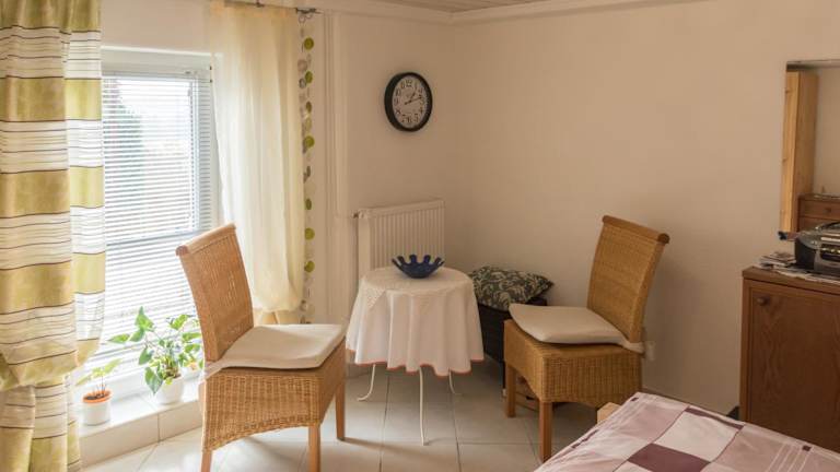 Die Ferienwohnung umfasst ein Schlafzimmer, ein Wohnzimmer sowie eine gut ausgestattete Küche mit Kühlschrank und Geschirrspüler. Ein Flachbild-TV ist ebenfalls vorhanden. Es gibt ein Badezimmer mit Dusche. Handtücher und Bettwäsche werden bereitgestellt.