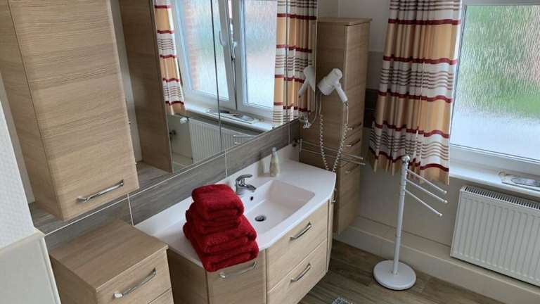Die Ferienwohnung umfasst zwei Schlafzimmer, eine Küche und einen Sitzbereich. Zur Ausstattung gehören ein Flachbild-TV und ein DVD-Player. Handtücher und Bettwäsche werden bereitgestellt.