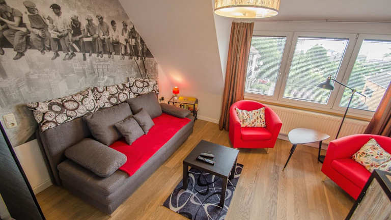 Die Wohneinheiten in der Ferienwohnung Cologne sind komfortabel und gemütlich eingerichtet. Jede Wohneinheit verfügt über einen Sitzbereich mit einem Schlafsofa, Sat-TV und einen Blu-ray-Player. Eine voll ausgestattete Küchenzeile mit Kühlschrank, Geschirrspüler, Backofen, Kaffeemaschine und Wasserkocher steht Ihnen ebenfalls zur Verfügung. Das private Badezimmer ist mit kostenfreien Pflegeprodukten und einem Haartrockner ausgestattet. Zusätzlich bietet das Apartment eine Terrasse für entspannte Stunden im Freien.