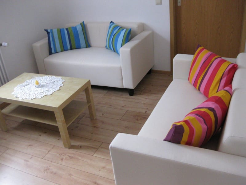 Ausstattung Ferienwohnung: - Zwei getrennte Schlafzimmer, davon ein Schlafzimmer mit Doppelbett und ein Schlafzimmer mit zwei Einzelbetten - Auf Wunsch Babyzustellbett (bis 11kg) - Bettwäsche und Handtücher sind inbegriffen - Esszimmer mit vollwertig ausgestatteter Küche mit Herd, Backofen, Kühlschrank und Spülmaschine - Geschirr für vier Personen mit Töpfe und Pfannen ist vorhanden - Filterkaffeemaschine, Wasserkocher, Mikrowelle und Toaster - Wohnzimmer mit zwei gemütlichen Sofas und Satelliten-TV - Badezimmer mit WC, Dusche und Haarföhn