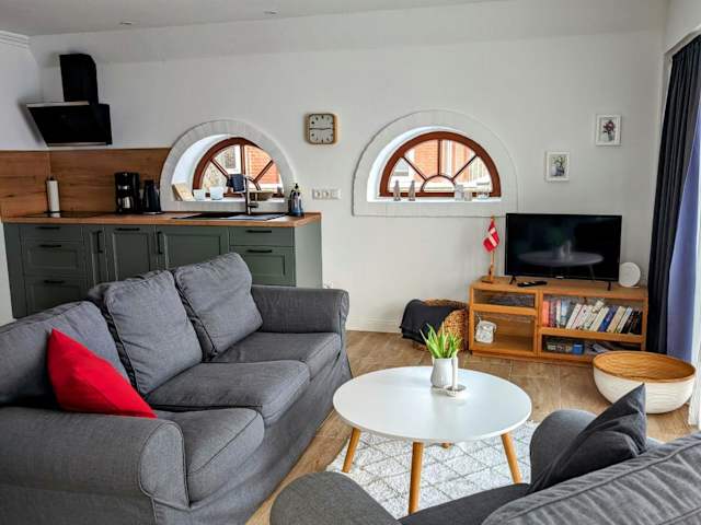 Die Ferienwohnung Deichblick verfügt über ein gemütliches Schlafzimmer, in dem Sie sich nach einem ereignisreichen Tag entspannen können. Die voll ausgestattete Küche bietet alle Annehmlichkeiten, die Sie für die Zubereitung Ihrer Mahlzeiten benötigen, einschließlich eines Geschirrspülers und eines Backofens. Eine Kaffeemaschine steht ebenfalls zur Verfügung, damit Sie morgens eine Tasse frischen Kaffee genießen können. Das Badezimmer verfügt über eine Badewanne und eine Waschmaschine, so dass Sie sich wie zu Hause fühlen können.
