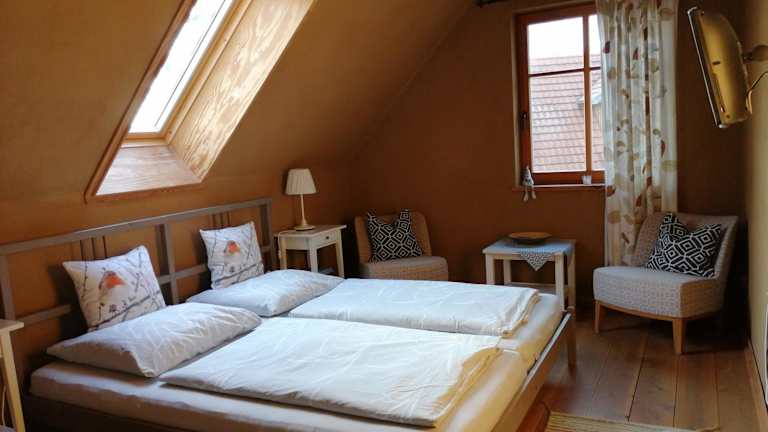 Der Ferienhof Dietmar Schulz bietet eine Vielzahl von Unterkünften, darunter private Zimmer, Apartments, ein Ferienhaus und ein Mobilheim. Die privaten Zimmer befinden sich im Dachgeschoss und verfügen über einen kombinierten Wohn- und Schlafbereich mit Sat-TV und CD-Player. Jedes Zimmer hat ein eigenes Bad. Im Erdgeschoss befinden sich ein Frühstücksraum mit Spielbereich und eine voll ausgestattete Küche, die von den Gästen genutzt werden kann. Die Apartments befinden sich in einem separaten Gebäude und bestehen aus 2 Schlafzimmern und einem Wohnzimmer. Waschmöglichkeiten sind ebenfalls vorhanden.