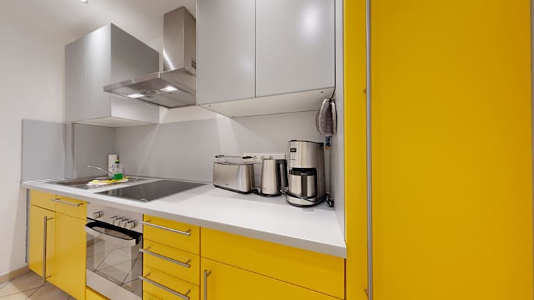 Das Apartment verfügt über ein gemütliches Schlafzimmer, ein Badezimmer mit Dusche und eine voll ausgestattete Küchenzeile mit Geschirrspüler und Kühlschrank. Kabel-TV sorgt für Unterhaltung und Handtücher und Bettwäsche können gegen Aufpreis ausgeliehen werden. Eine Terrasse steht den Gästen ebenfalls zur Verfügung.