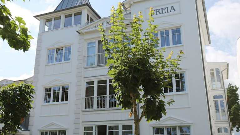 Im Sommer steht den Gästen der Villa Freia Wohnung 03 ein kostenloser Strandkorb am Strand zur Verfügung. Hier können Sie die Sonne genießen und sich entspannen. In der Umgebung gibt es auch zahlreiche Freizeitmöglichkeiten wie das Erlebnismuseum Wasserwelt oder das Jagdschloss Granitz, die einen Besuch wert sind.