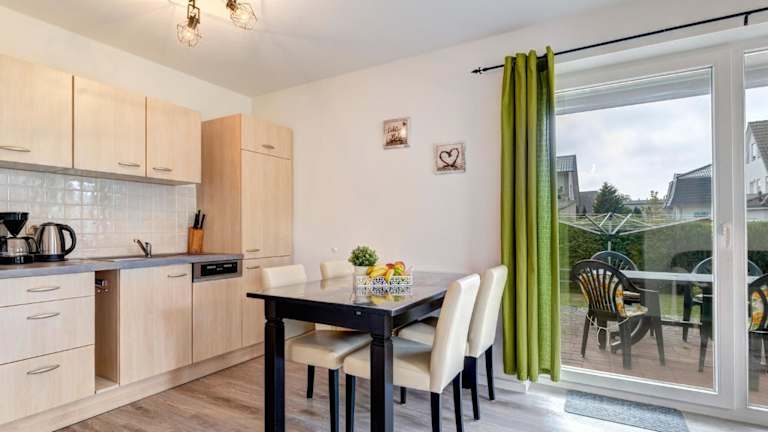 Die Ferienwohnung umfasst zwei Schlafzimmer und eine voll ausgestattete Küche, die mit einem Kühlschrank und einem Geschirrspüler ausgestattet ist. Des Weiteren gehört ein Badezimmer mit einer Dusche und einem Haartrockner zur Ausstattung. Handtücher und Bettwäsche werden zur Verfügung gestellt.
