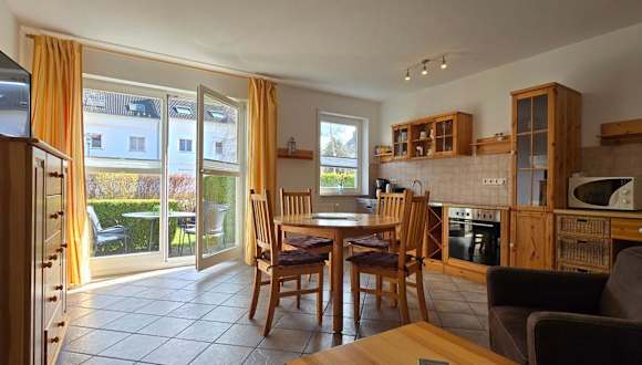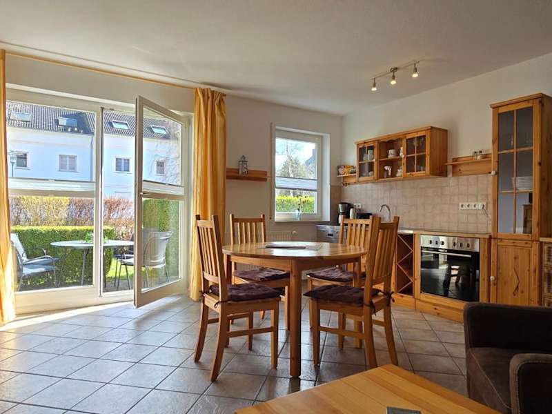 Die Ferienwohnung E4 verfügt über 2 gemütliche Schlafzimmer, ein geräumiges Wohnzimmer und eine gut ausgestattete Küche. Das Apartment ist geschmackvoll eingerichtet und bietet eine Terrasse, auf der Sie die frische Ostseeluft genießen können. Die Küche ist mit einem Kühlschrank und einem Backofen ausgestattet, so dass Sie Ihre eigenen Mahlzeiten zubereiten können.