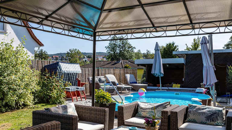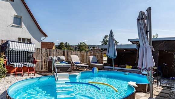 Gäste können im Außenpool schwimmen und verschiedene Freizeitaktivitäten wie Wandern oder Fahrradfahren nutzen. Zudem steht ein Garten zur Verfügung, in dem die Gäste entspannen und den Grill nutzen können.