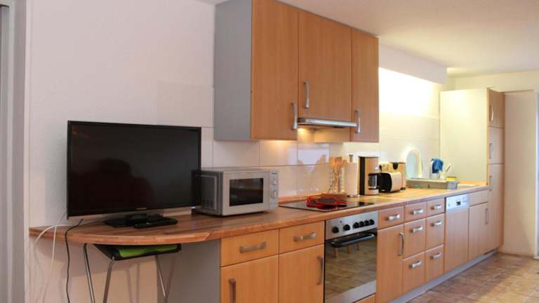 Die Ferienwohnung beinhaltet 2 Schlafzimmer und eine gut ausgestattete Küchenzeile mit Kühlschrank und Geschirrspüler. Ein Badezimmer mit Dusche, Haartrockner und Waschmaschine ist ebenfalls vorhanden. Handtücher und Bettwäsche werden zur Verfügung gestellt.