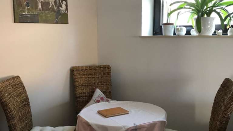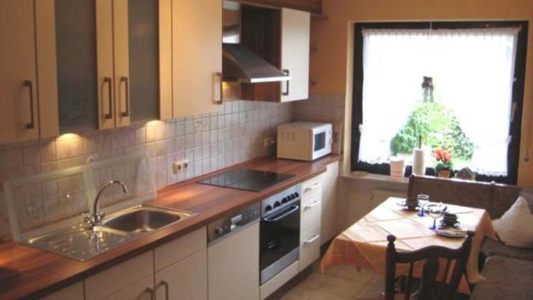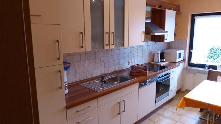 In der Ferienwohnung ist eine Küche vorhanden, die mit einem Kühlschrank, einem Geschirrspüler und einem Ofen ausgestattet ist. Es werden auch spezielle Ernährungsbedürfnisse auf Anfrage berücksichtigt. Zudem sind Grillmöglichkeiten verfügbar, die gegen zusätzliche Gebühren genutzt werden können.