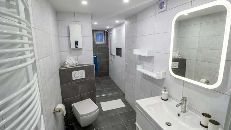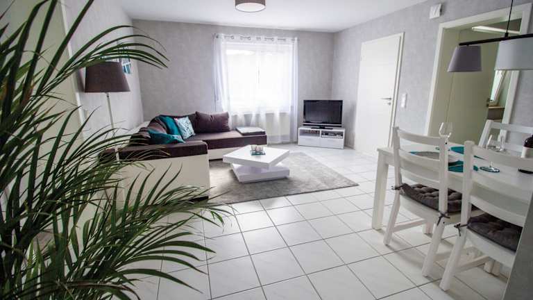 Die Ferienwohnung besteht aus einem Schlafzimmer, einem Wohnzimmer sowie einer voll ausgestatteten Küche, die eine Kaffeemaschine und einen Kühlschrank umfasst. Das Badezimmer ist mit einer Dusche und einem Haartrockner ausgestattet. Handtücher und Bettwäsche werden bereitgestellt.