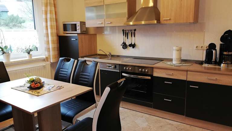 Die Ferienwohnung Einenkel bietet Ihnen ein Schlafzimmer und ein Wohnzimmer mit gemütlichen Möbeln, in denen Sie sich wie zu Hause fühlen können. Eine voll ausgestattete Küche ermöglicht es Ihnen, Ihre eigenen Mahlzeiten zuzubereiten, und ein Sitzbereich mit einem Flachbild-TV lädt zum Entspannen ein. Die Nichtraucher-Ferienwohnung bietet Ihnen alles, was Sie für einen angenehmen Aufenthalt benötigen.