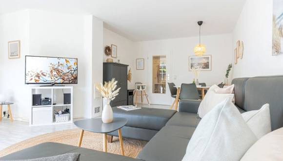 Die Ferienwohnung besteht aus 2 Schlafzimmern, einer Küchenzeile, die mit einem Kühlschrank und einem Geschirrspüler ausgestattet ist, sowie einem Badezimmer mit Dusche und Haartrockner. Es gibt auch eine Waschmaschine. Handtücher und Bettwäsche werden bereitgestellt.