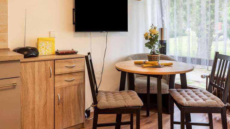 Die Ferienwohnung verfügt über ein Schlafzimmer und ist mit einem TV mit Kabelkanälen ausgestattet. Die gut ausgestattete Küche umfasst einen Kühlschrank und eine Mikrowelle. Zudem gibt es ein Badezimmer mit Dusche. Handtücher und Bettwäsche werden bereitgestellt.
