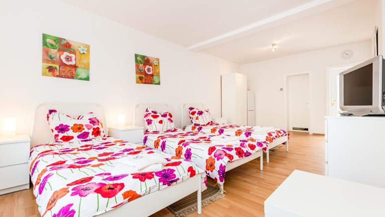 Die Ferienwohnung umfasst zwei Schlafzimmer und verfügt über einen Flachbild-TV mit Satellitenkanälen. Die gut ausgestattete Küche beinhaltet einen Kühlschrank und einen Ofen. Des Weiteren gibt es ein Badezimmer mit einer Dusche. Handtücher und Bettwäsche stehen den Gästen zur Verfügung.