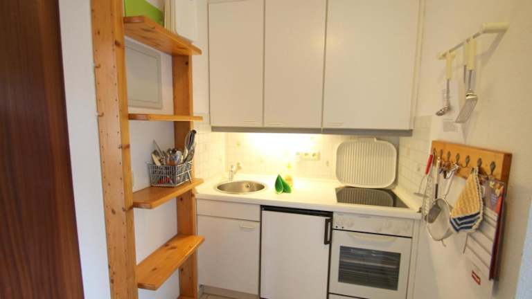 Die Unterkunft verfügt über eine Küchenzeile, die mit einem Kühlschrank, einem Ofen, einer Mikrowelle, einer Kaffeemaschine und einem Wasserkocher ausgestattet ist. Es sind keine weiteren Verpflegungsmöglichkeiten angegeben.