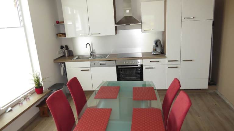 Die Ferienwohnung verfügt über zwei Schlafzimmer, ein Wohnzimmer und eine voll ausgestattete Küche, die mit einem Kühlschrank und einer Kaffeemaschine ausgestattet ist. Das Badezimmer ist mit einer Dusche und einem Haartrockner ausgestattet. Zur Unterhaltung stehen ein Flachbild-TV mit Kabelkanälen, eine Spielekonsole (PS2) und ein CD-Player zur Verfügung.