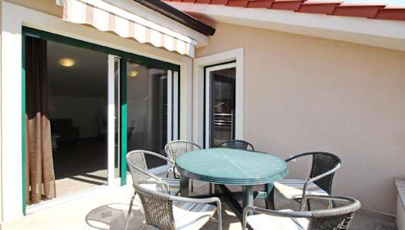 Die Ferienwohnung bietet Platz für bis zu 6 Personen und verfügt über eine eigene Terrasse sowie eine Klimaanlage. Ein Privatparkplatz ist vor Ort vorhanden. Die Anreise ist ab 15:00 bis 20:00 Uhr und der Check-out ist bis 10:00 Uhr möglich. Die Unterkunft ist in der Lage, Haustiere zu gestatten, wobei möglicherweise Gebühren anfallen. Eine Zahlung per Überweisung muss vor der Anreise erfolgen.