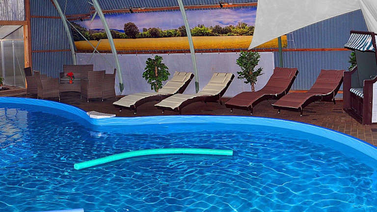 In der Ferienwohnung können die Gäste den Innenpool und den Garten nutzen.