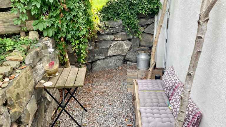 Die Ferienwohnung verfügt über ein Schlafzimmer und eine Küchenzeile, die mit einem Kühlschrank und einer Kaffeemaschine ausgestattet ist. Handtücher und Bettwäsche werden bereitgestellt.
