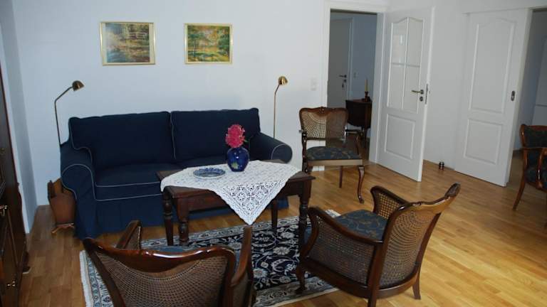 Die Ferienwohnung umfasst ein Schlafzimmer, ein Wohnzimmer, eine gut ausgestattete Küche und ein Badezimmer mit Dusche und Badewanne. Es stehen ein Balkon mit Gartenblick sowie ein Satelliten-Flachbild-TV zur Verfügung. Handtücher und Bettwäsche werden bereitgestellt.