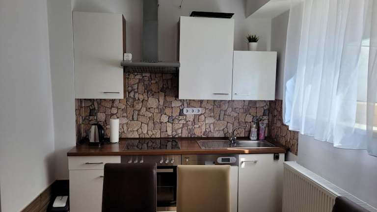 Die Unterkunft ist mit einer gut ausgestatteten Küche ausgestattet, die einen Kühlschrank und einen Geschirrspüler umfasst. Essensoptionen oder Verpflegungsmöglichkeiten werden nicht erwähnt.