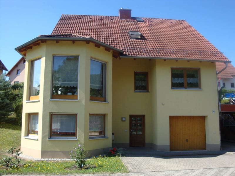 Ferienwohnung Harmonie Harmonische Urlaubstage ... in Uhlstädt-Kirchhasel, nur wenige Kilometer von Rudolstadt entfernt. Unsere 55 qm große gemütliche Ferienwohnung mit Platz für bis zu 5 Personen befindet sich im OT Etzelbach, in einer ruhig gelegenen Einfamilienhaussiedlung. Die Wohnung erreichen Sie über einen ebenerdigen separaten Zugang, so dass auch Rollstuhlfahrer hier ohne weiteres ihre Urlaubstage verleben können. Monteure und Biker sind bei uns ebenfalls herzlich willkommen - eine beschränkte Unterstellmöglichkeit für Motorräder und Fahrräder ist vorhanden. Für Angehörige, die einen Patienten in der nahegelegenen Rheumaklinik Weißenburg besuchen wollen, ist unserer Wohnung ideal gelegen da Sie in nur 5 Autominuten diese erreichen. Preise Ferienwohnung pro Nacht: (ausgenommen sind Weihnachten und Silvester) Preis für 2 Personen: 45,00 EUR Aufbettung ab 3 Jahre: 10,00 EUR Kinder 0-3 Jahre: kostenfrei Kurzaufenthalts-Zuschlag (1-3 ÜN): 15,00 EUR Endreinigung, Bettwäsche, Handtücher, sonstige Nebenkosten sind im Preis enthalten. Bitte haben Sie Verständnis, dass wir keine Haustiere aufnehmen können! Für eine Buchung sowie den Belegungskalender besuchen Sie unsere Homepage. http://www.ferienwohnungharmonie.de
