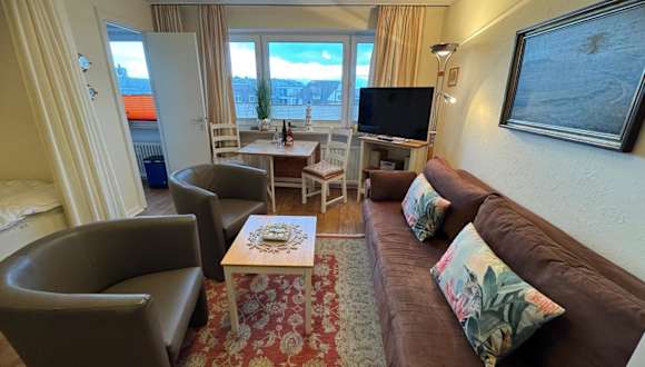 Die Ferienwohnung befindet sich in Westerland, nur 200 m vom Strand und 200 m vom Freizeitbad Sylter Welle entfernt. Der Bahnhof Westerland ist 1,5 km entfernt. Weitere Sehenswürdigkeiten in der Nähe sind das Sylt Aquarium (900 m) und der Tierpark Tinnum (4,1 km). Der Golfclub Sylt ist in 5,5 km erreichbar. Der Flughafen Sylt liegt 3 km von der Unterkunft entfernt.