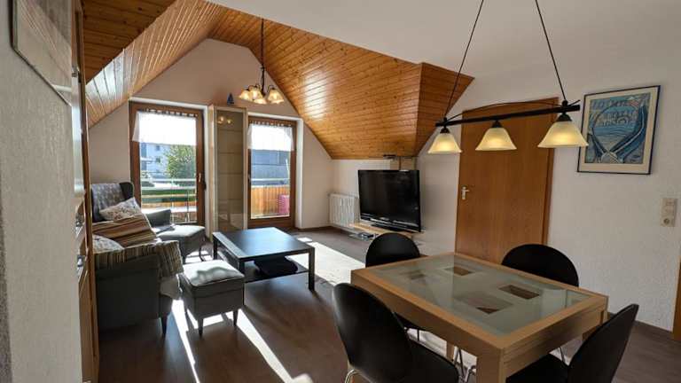 Die Ferienwohnung Haus Poppis befindet sich in Kressbronn am Bodensee, 16 km von der Messe Friedrichshafen entfernt. Ein privater Parkplatz steht kostenlos zur Verfügung. Der Flughafen Friedrichshafen ist 17 km entfernt. Weitere Sehenswürdigkeiten sind die Casino Bregenz (26 km) und die Dornbirner Messe (33 km).