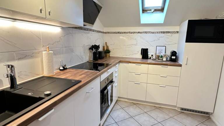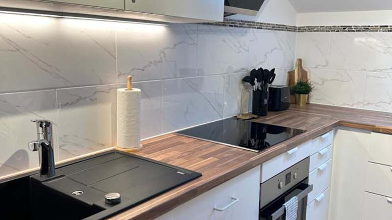 Die Ferienwohnung verfügt über zwei Schlafzimmer, ein Badezimmer und ist ausgestattet mit Bettwäsche, Handtüchern und einem Flachbild-TV mit Satellitenkanälen. Des Weiteren stehen ein Essbereich und eine voll ausgestattete Küche zur Verfügung. Ein Balkon mit Blick auf die Berge ergänzt die Ausstattung der Unterkunft.