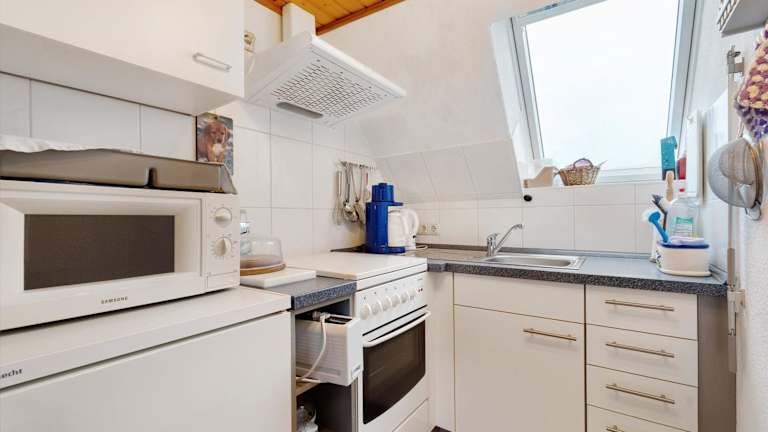Die Ferienwohnung verfügt über zwei Schlafzimmer, ein Badezimmer sowie eine voll ausgestattete Küche. Die Ausstattung umfasst zudem Bettwäsche, Handtücher und einen Fernseher mit Satellitenempfang.