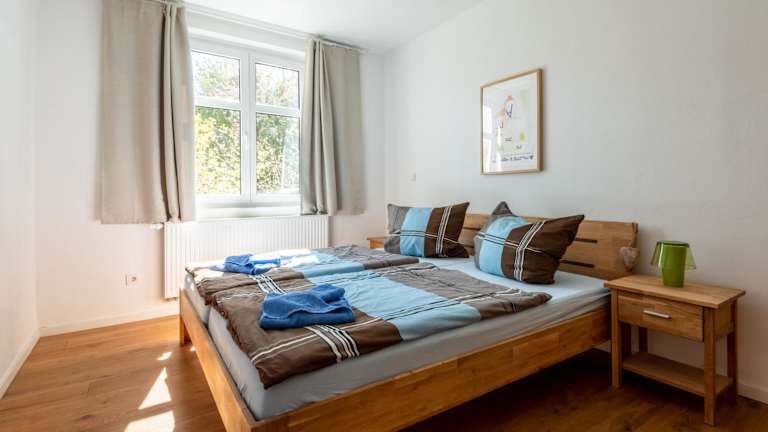 Die Ferienwohnung besteht aus 2 Schlafzimmern, einem Wohnzimmer mit Flachbild-TV, einer gut ausgestatteten Küche mit Kühlschrank und Geschirrspüler sowie einem Badezimmer mit Dusche. Handtücher und Bettwäsche können gegen Aufpreis bereitgestellt werden.