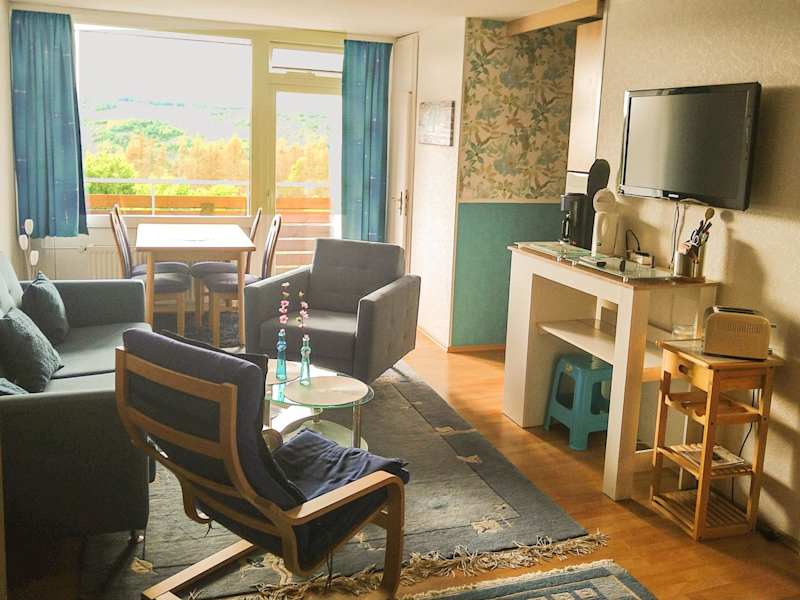 Das Apartment in der Ferienwohnung Himmelblau - Altenau Harz verfügt über ein Schlafzimmer, ein Wohnzimmer und ein Badezimmer. Es gibt auch einen Balkon mit Blick auf die Berge. Zur Ausstattung gehören ein Flachbild-TV, eine voll ausgestattete Küche mit Kühlschrank und Geschirrspüler sowie kostenfreies WLAN.