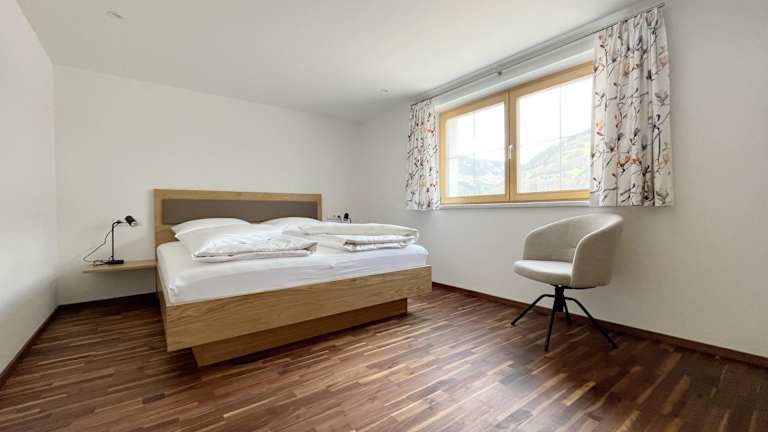Die Ferienwohnung umfasst 1 Schlafzimmer und 1 Badezimmer. Zur Ausstattung gehören Bettwäsche, Handtücher, ein Flachbild-TV mit Kabelkanälen, ein Essbereich und eine voll ausgestattete Küche. Zudem gibt es eine Terrasse mit Blick auf die Berge.