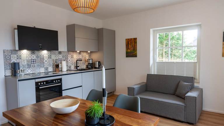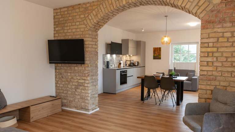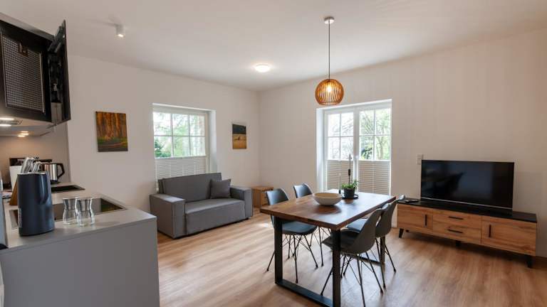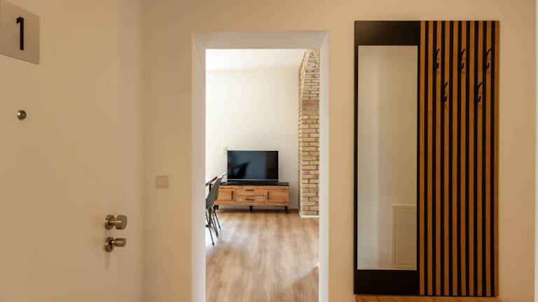 Die Unterkunft umfasst ein Schlafzimmer und ein Badezimmer. Zur Ausstattung gehören Bettwäsche, Handtücher sowie ein Flachbild-TV. Die voll ausgestattete Küche und der Essbereich ermöglichen eine eigenständige Zubereitung von Mahlzeiten.