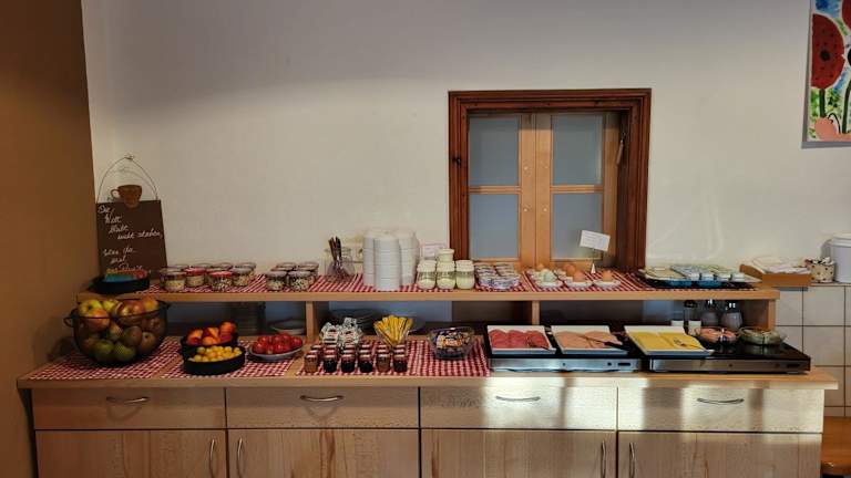 Ein Frühstück wird in Form eines Buffets angeboten.