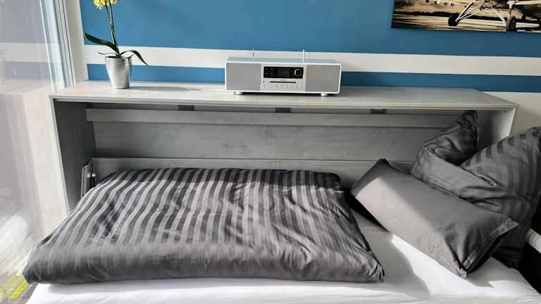 Das Apartment bietet ein Schlafzimmer, ein Wohnzimmer, eine voll ausgestattete Küche mit Kühlschrank und Kaffeemaschine sowie ein Badezimmer mit Dusche. Handtücher und Bettwäsche werden gestellt. Ein Balkon gehört ebenfalls zur Ausstattung.
