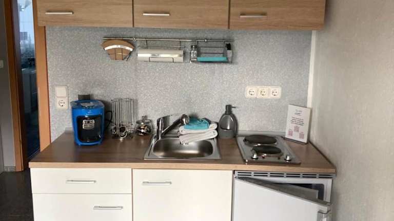 Die Unterkunft bietet ein Schlafzimmer, eine Küchenzeile mit Kühlschrank und Herdplatte sowie einen Flachbild-TV und einen Sitzbereich. Das Badezimmer ist mit einer Dusche ausgestattet. Handtücher und Bettwäsche werden bereitgestellt.