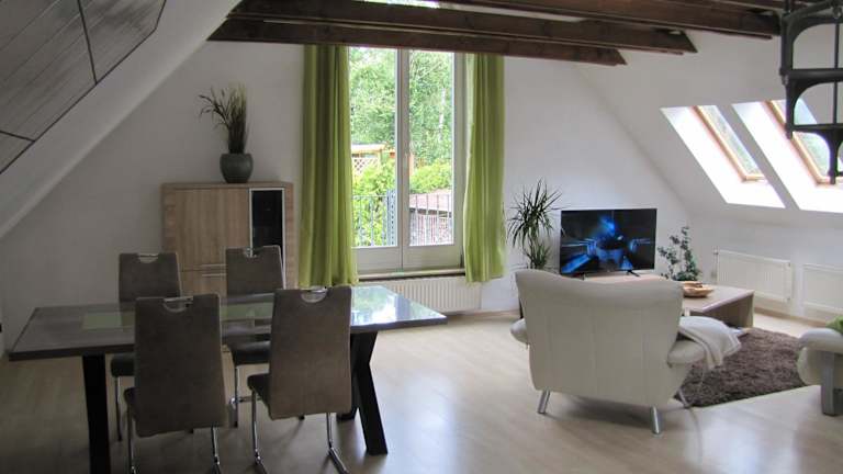 Die Ferienwohnung im Grünen von Dresden liegt in einer ruhigen Gegend in Dresden, etwa 7,9 km vom Internationalen Congress Center Dresden entfernt. Zu den nahegelegenen Sehenswürdigkeiten gehören der Zwinger und das Historische sowie das Neue Grüne Gewölbe, die beide weniger als 9 km entfernt sind. Der Flughafen Dresden befindet sich in einer Distanz von 4 km.