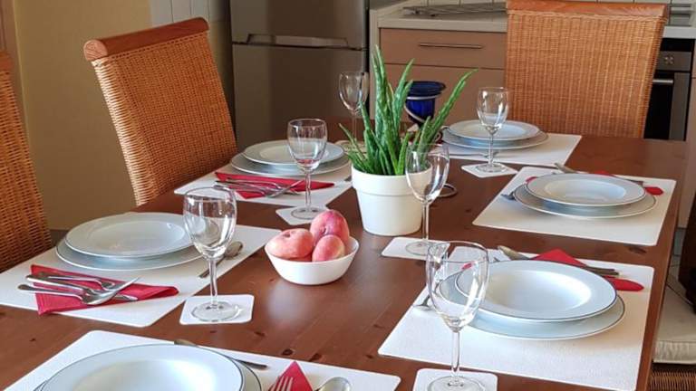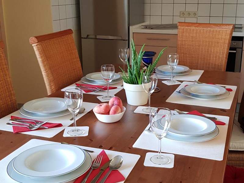 Die Unterkunft verfügt über eine voll ausgestattete Küche mit Kühlschrank, Geschirrspüler, Ofen, Herdplatte, Toaster, Kaffeemaschine und Wasserkocher. Eine Verpflegung wird nicht ausdrücklich erwähnt.
