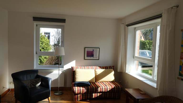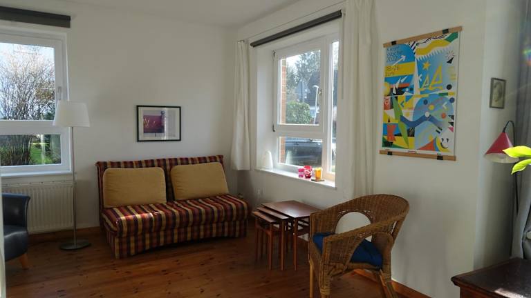 Die Ferienwohnung im Kieler Süden bietet kostenfreies WLAN und einen Privatparkplatz. Sie ist mit einem Balkon ausgestattet, von dem aus die Gäste einen Blick auf den Garten genießen können.