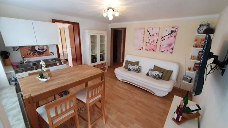 Die Ferienwohnung bietet ein Schlafzimmer sowie ein Wohnzimmer und ist mit einem Flachbild-TV ausgestattet. Die gut ausgestattete Küche umfasst einen Kühlschrank und einen Ofen. Das Bad verfügt über eine Dusche. Zur Ausstattung gehören außerdem eine Terrasse mit Gartenblick und kostenfreies WLAN. Handtücher und Bettwäsche werden bereitgestellt.