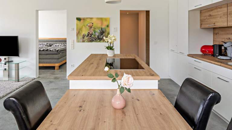 In der Ferienwohnung gibt es eine voll ausgestattete Küche, die das Zubereiten von Mahlzeiten ermöglicht. Essensoptionen außerhalb der Unterkunft sind nicht angegeben.