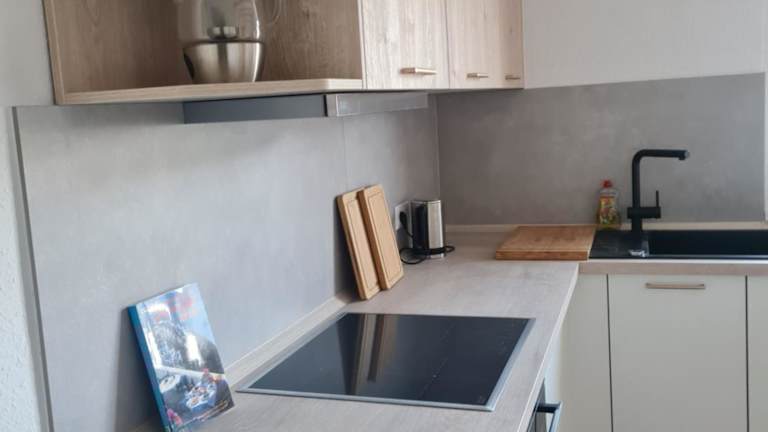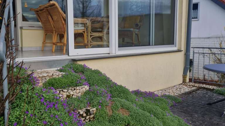 Die Ferienwohnung verfügt über ein Schlafzimmer, ein Wohnzimmer und bietet eine Terrasse mit Gartenblick. Zur Ausstattung gehören ein Flachbild-TV, eine gut ausgestattete Küche mit Kühlschrank und Geschirrspüler sowie ein Badezimmer mit Dusche. Handtücher und Bettwäsche werden bereitgestellt. Es sind Nichtraucherzimmer vorhanden.
