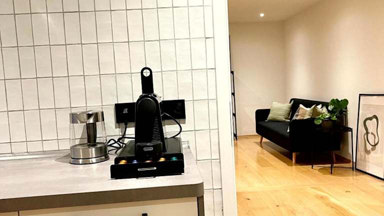 Die Ferienwohnung besteht aus einem Schlafzimmer und einem Wohnzimmer. Sie verfügt über eine voll ausgestattete Küche mit Kühlschrank und Kaffeemaschine sowie ein Badezimmer mit Dusche und kostenlosen Pflegeprodukten. Handtücher und Bettwäsche sind in der Unterkunft vorhanden.
