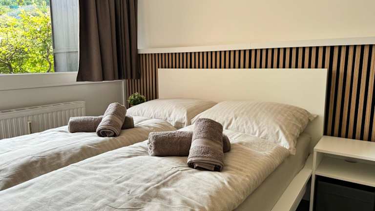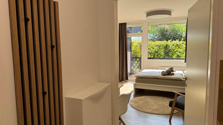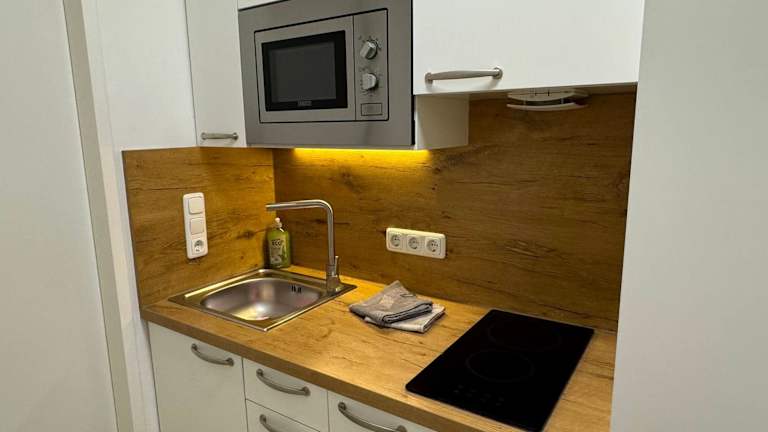 Die Ferienwohnung verfügt über 1 Schlafzimmer, eine Küche mit Kühlschrank und Mikrowelle, einen Flachbild-TV, einen Sitzbereich und 1 Badezimmer mit Dusche. Handtücher und Bettwäsche werden bereitgestellt.